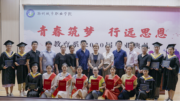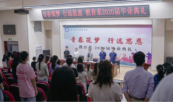 时节盛夏,草木丰茂,不一样的毕业季,别样的毕业典礼。7月10日上午,教育系2020届学生毕业典礼在四楼报告厅礼如期举行,600余名学生通过网络直播“参加”了这场特殊的仪式。院长张志华出席毕业典礼并未获奖学生颁奖,教育系党总支书记钱庆兵、党总支副书记徐立娟、教学秘书刘明辉、实验实训秘书陈立超出席毕业典礼并在主席台就坐。教师代表、辅导员代表、147名毕业生代表现场一起见证这难忘时刻。毕业典礼由系党总支副书记徐立娟主持。