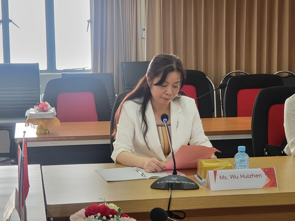 在先皇理工大学(King Monkut’s Institute of Technology Ladkrabang),访问团一行与先皇理工大学副校长Dr. Sirirat Petsangsri、护理学院和教育学院相关领导以及部分在读博士生亲切座谈。双方就开展两校学生交流互访、我校教师学历提升渠道、建立“鲁班工坊”等事宜进行了深入探讨,共同签订了两校合作交流意向书,举行“海外技能培训基地”挂牌仪式。吴惠珍表示,我校目前有包括保健按摩师、保育员、育婴师、茶艺师等16个职业技能等级认定的工种,可以给海外留学生、泰国大学的学生以及中国驻泰国的企业员工进行线上技能培训,进一步推动双方在人文交流、职业教育领域的高质量交流与合作。