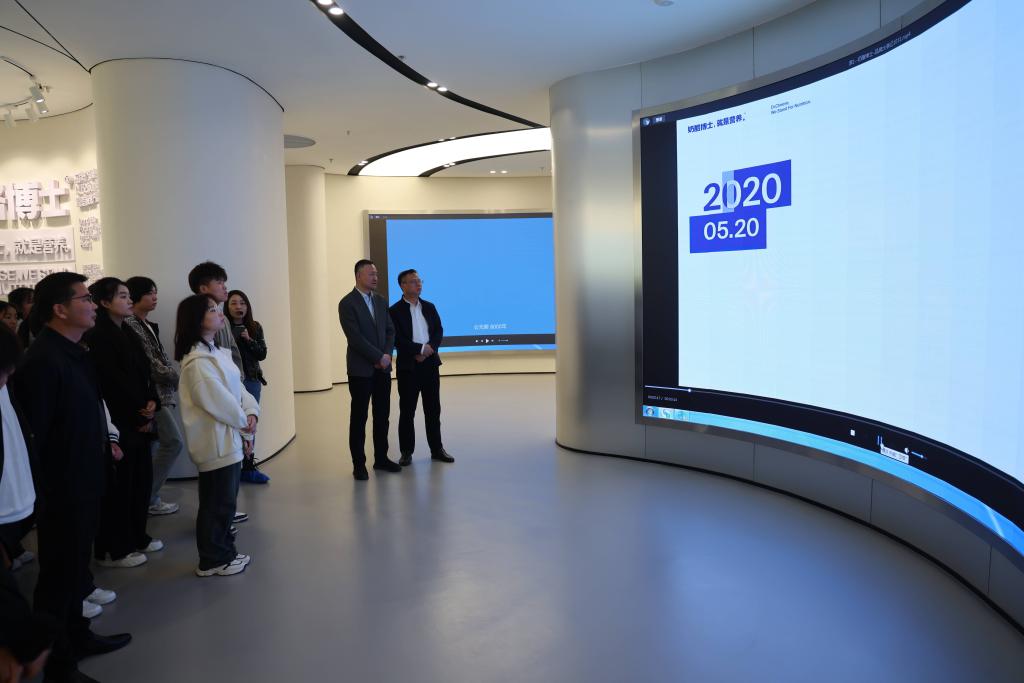 在中新苏滁现代产业园规划馆,王燕永一行听取了园区建设背景、目前建设情况和未来发展规划的情况介绍。王燕永指出,滁州作为安徽东向发展的“桥头堡”,同时也是南京、合肥两大都市圈的“双圈籍”城市,坐拥天时地利人和,正处于厚积薄发、动能强劲、大有可为的上升期和关键期。苏滁现代产业园作为苏州工业园区走出江苏省合作共建的首个项目,是安徽省参与长三角互利合作、承接国内外产业转移、提升皖江示范区建设水平的重大成果,未来发展空间十分广阔。希望各位同学能够通过本次活动,进一步的认识滁州、了解滁州、热爱滁州、留在滁州,成为滁州“宣传员”,为滁州的发展建设贡献力量。