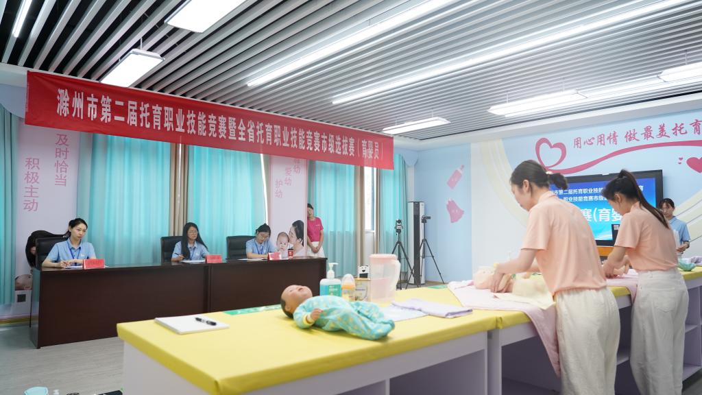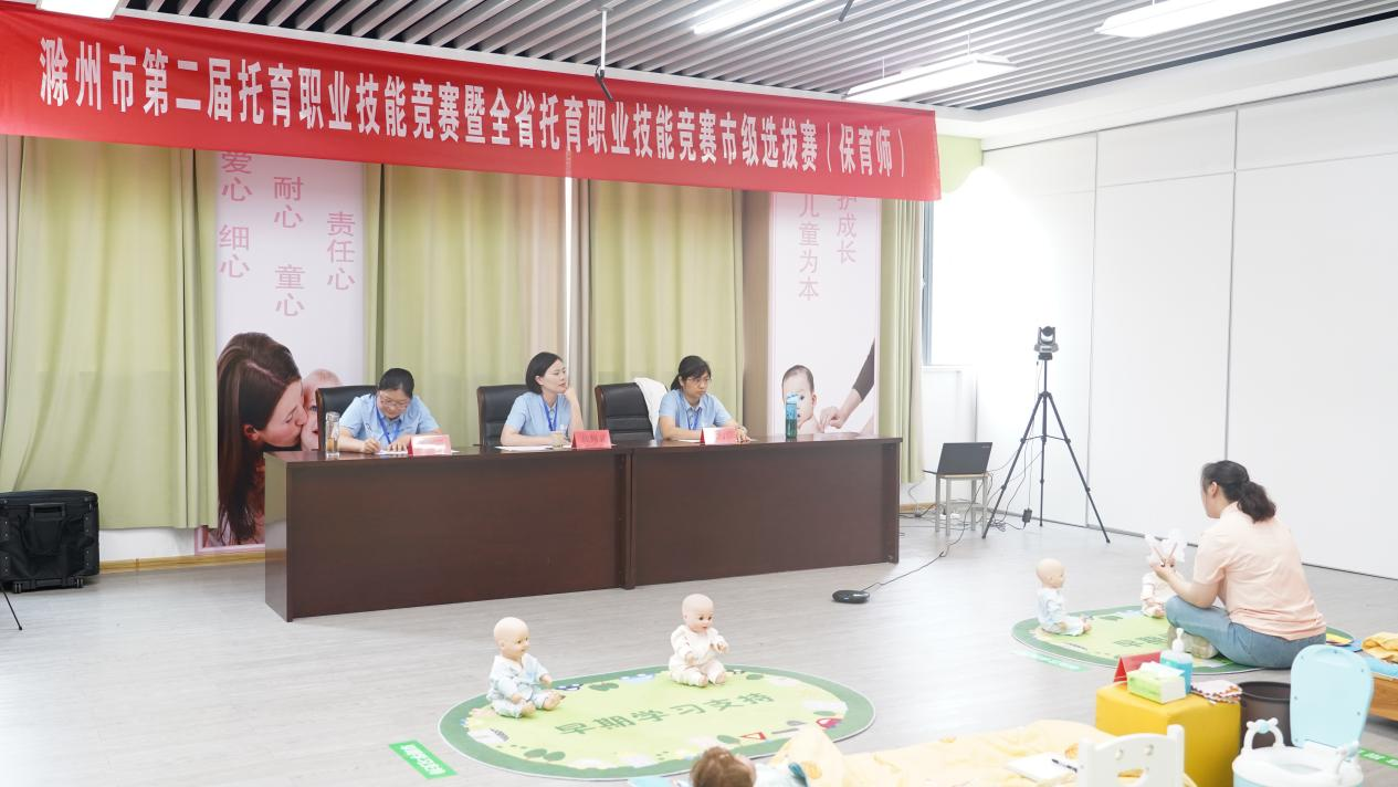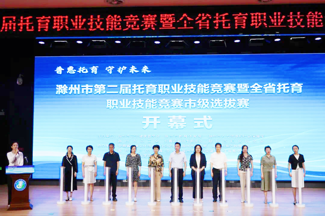 为促进托育服务行业规范发展,进一步提升托育机构服务能力和水平,6月15-16日,我校成功承办滁州市第二届托育职业技能竞赛暨全省托育职业技能竞赛市级选拔赛,竞赛以“普惠托育、守护未来”为主题,校党委副书记、校长汪上,市卫健委党组书记、主任蒋玲,市总工会党组书记、副主席高江瑛等有关领导、专家出席活动,来自滁州市辖六县(市)两区的领队、参赛选手、企业代表等300余人共同见证了这一盛况。