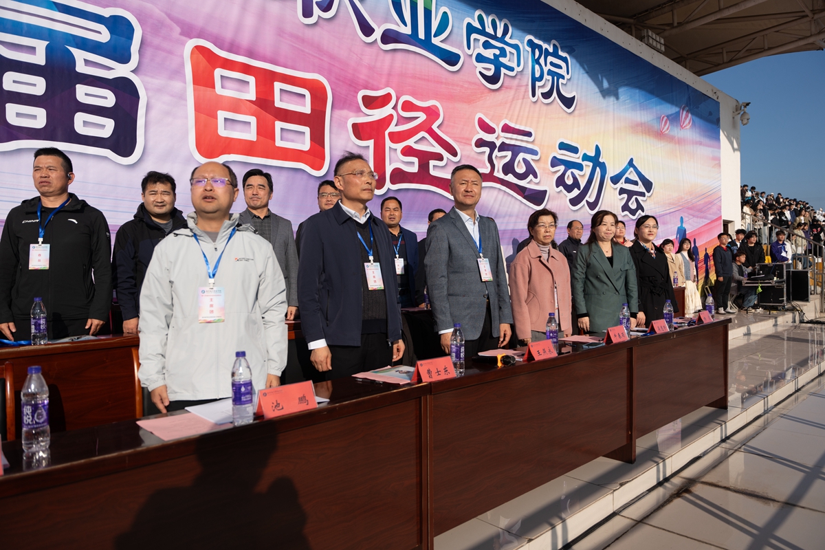 激情燃烧,青春飞扬。10月23日上午,我校第十四届田径运动会在体育场隆重开幕。校党委书记王燕永出席开幕式,并宣布开幕,校党委委员、副校长、体委主任、校运动会执行主任曹士东致开幕词,校领导牛春雨、吴惠珍、池鹏、杨如江、杨莹出席开幕式。校体育运动委员会全体委员,各部门、教学院(部)负责人,教师及学生代表,全体裁判员、运动员参加了开幕式。校党委委员、学生处处长杨如江主持开幕式,并宣读本次比赛纪律条例。
