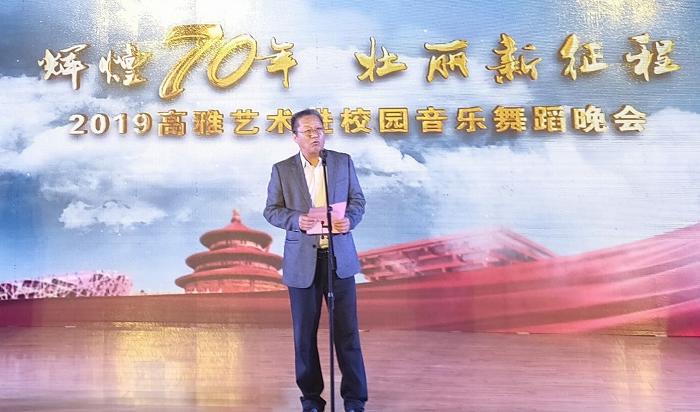 朱德顺在致辞中表示,今年适逢中华人民共和国成立70周年,在全党全国上下认真学习习近平新时代中国特色社会主义思想和第二批“不忘初心、牢记使命”主题教育开展之际,淮北师范大学“高雅艺术进校园”演出团队来到滁州城市职业学院,交流艺术教育成果,共同表达喜悦的心情。淮北师范大学将以此次演出为契机,进一步加强与滁州城市职业学院的交流与合作,共同推进校园文化艺术建设,为科教兴国、高教强省、服务地方经济社会发展和建设五大发展、美好安徽做出积极贡献。
