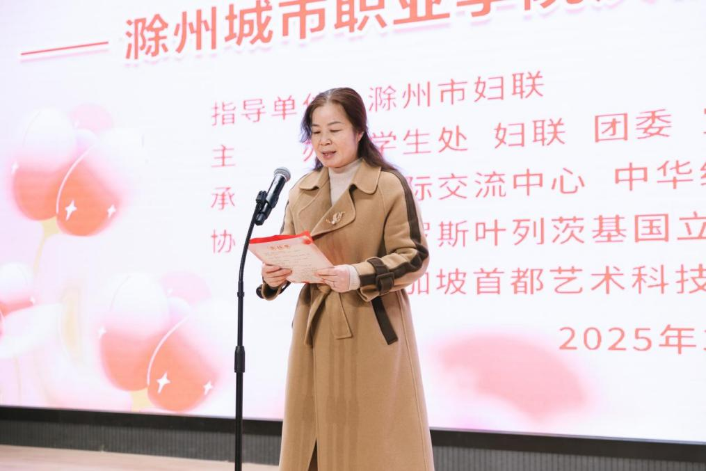 吴惠珍发表致辞,她指出,女教职工是学校发展的重要力量,为学校各项事业的发展做出了突出贡献,女大学生是祖国的未来、社会的希望,新时代的女性拥有前所未有的机遇和平台,同时也肩负着更多的责任与使命。她希望全体女教职工继续发扬“自尊、自信、自立、自强”的精神,以更加饱满的热情、更加昂扬的斗志,为学校高质量发展贡献巾帼智慧力量,期望女大学生们珍惜大学时光,努力学习专业知识,提升综合素养,勇敢追逐自己的梦想。