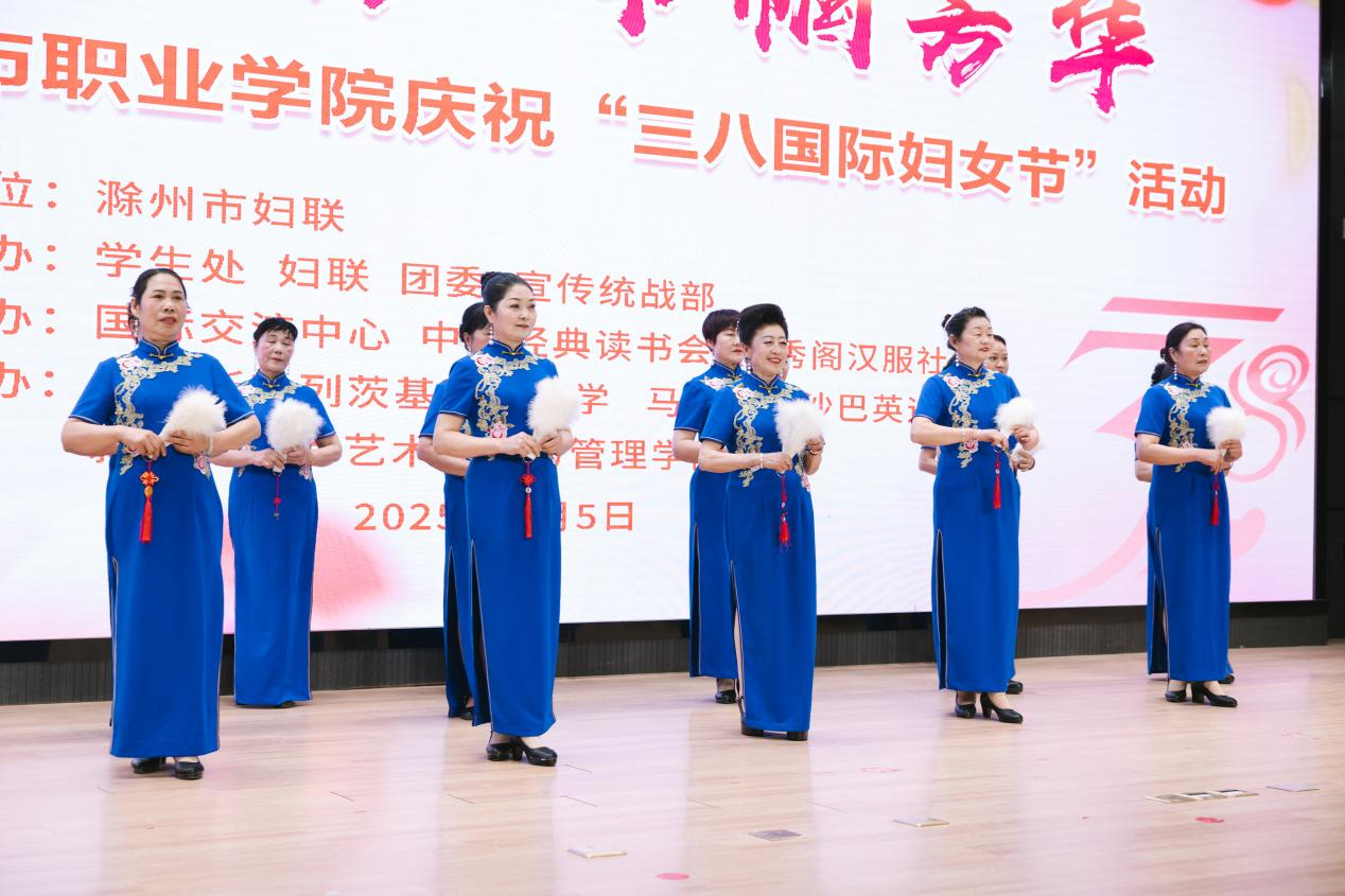 为庆祝第115个“三八”国际妇女节,由学生处、妇联、团委、宣传统战部主办的“华服映春•巾帼芳华”主题庆祝活动,于3月5日下午在管理与信息学院报告厅成功举办。滁州市妇联副主席吴晓丽,校党委委员、副校长吴惠珍,校妇联主席、继续教育学院院长许梅,各院部相关同志和学生代表欢聚一堂,共同庆祝这一节日。活动在欢快的凤阳花鼓声中拉开帷幕。