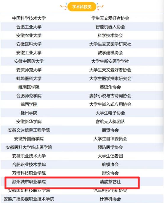 为深入贯彻落实习近平总书记关于青年工作的重要思想和习近平总书记考察安徽重要讲话精神,进一步激发高校学生社团活力,充分发挥学生社团育人功能,不断提升全省高校社团建设管理整体水平,团安徽省委、安徽学联开展2024-2025学年安徽省高校联通杯“活力社团”风采展示活动。自活动启动以来,我校高度重视、精心组织,通过“社团自主申报—校内初审评选—专项指导提升”的流程,遴选5个优秀社团代表学校参赛。经过线上风采展示、线下现场答辩等多轮激烈角逐,最终“清韵茶艺社”“艺创协会”“龘龘舞龙社”3个社团凭借深厚的文化底蕴、创新的活动形式与突出的育人成果,成功斩获省级荣誉。
