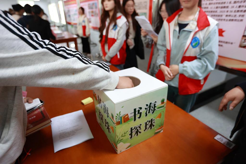 仪式结束后,四项特色趣味读书活动同步有序开展,现场师生踊跃参与、氛围浓厚。在书海探珠知识竞答环节,师生从容应答、精准作答,在趣味互动中巩固文学常识、提升知识储备;书语传声经典诵读活动中,师生深情朗读经典名篇与优秀作品,声情并茂、字字入心,用声音传递文字力量、感受阅读温度;书山寻宝馆藏探秘环节,图书馆工作人员为现场师生讲解文献检索技巧、在实践探索中熟悉馆藏资源、提升信息素养;书香心语文化墙展示环节,通过提笔书写读书心得、成长寄语与好书推荐,感悟定格书香瞬间、凝聚阅读力量。系列活动兼具知识性、趣味性、互动性,充分激发师生阅读热情,营造了乐学善读、交流互鉴、书香满校园的良好育人氛围。