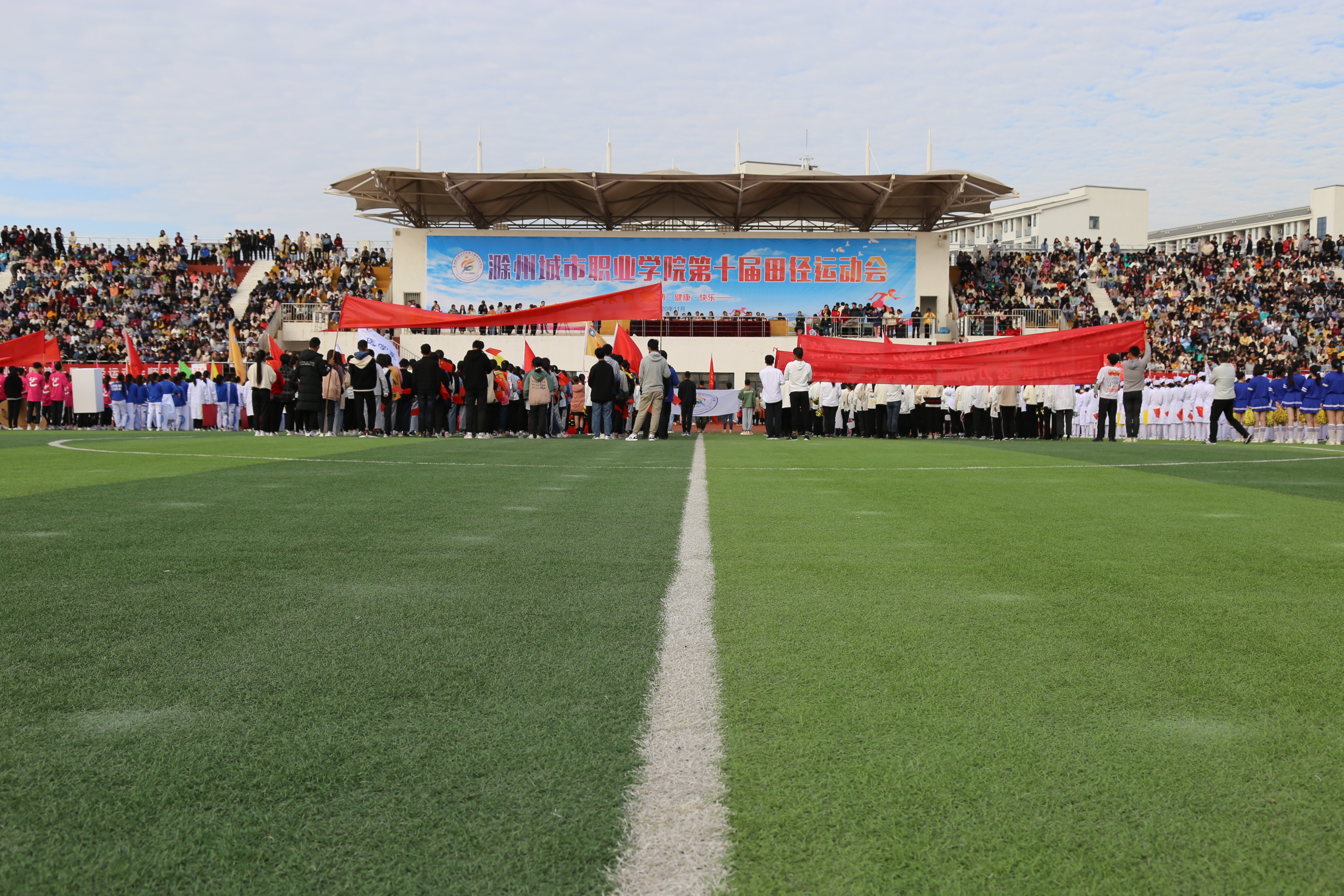 学院党委书记米德成宣布滁州城市职业学院第十届田径运动会开幕。开幕式上,近千名学生参加了文艺表演,场面恢宏壮观、震撼人心。整齐划一的团体操表演,上下翻飞的扇子舞表演,充满朝气的草裙舞,健康阳光的踏板操和表现脱贫攻坚、决战决胜全面建设小康社会取得的丰硕成果的大型团体操《小康欢歌》等大型文艺表演,完美地将舞蹈、音乐与技巧融为一体,充分展现出当代大学生的青春与活力。