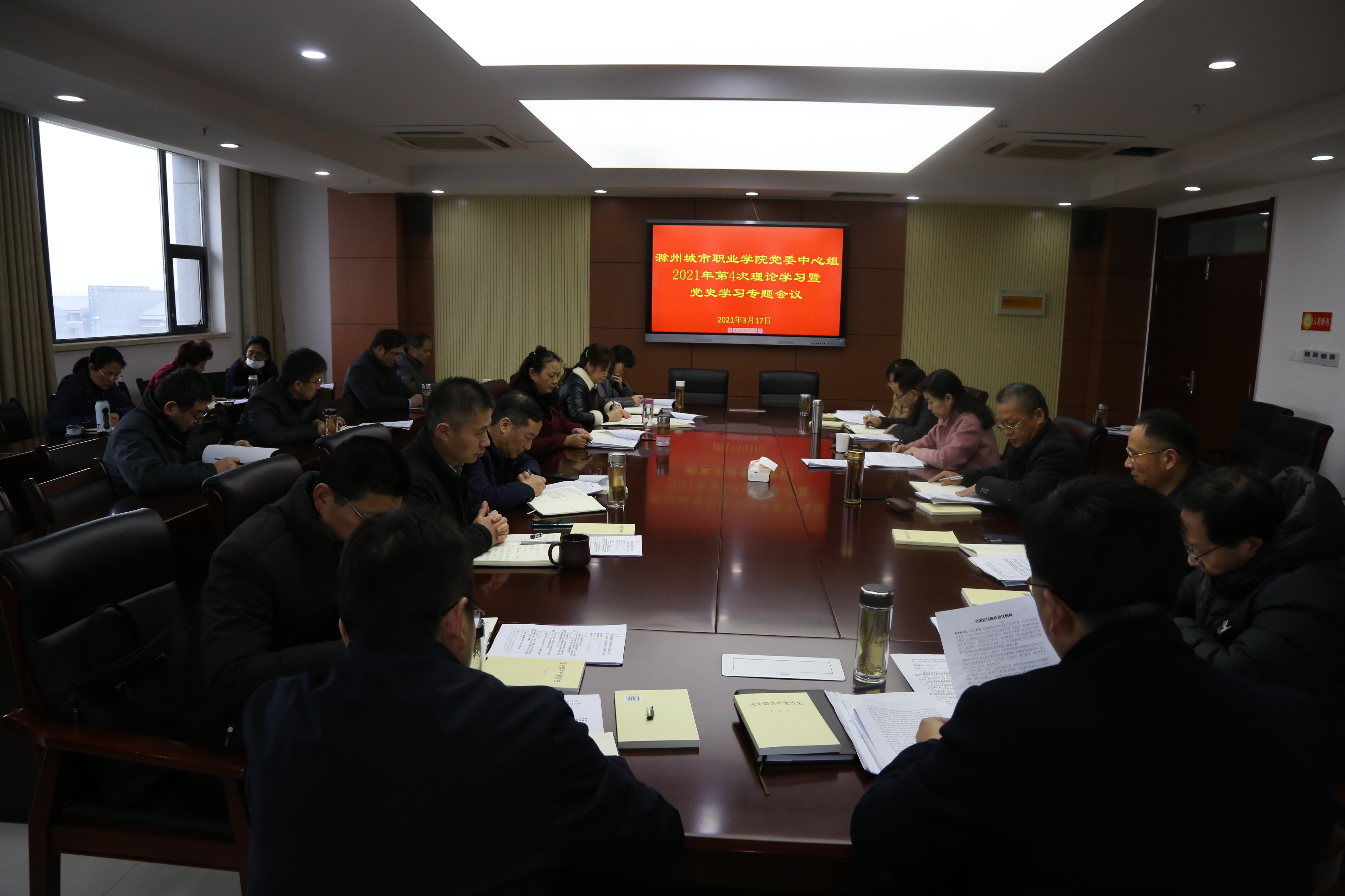 3月17日下午,学院党委中心组2021年第4次理论学习暨党史学习教育专题会议在图文中心第四会议室召开。党委副书记牛春雨受党委书记米德成委托主持会议,党委中心组成员,副县级领导干部参加会议。
