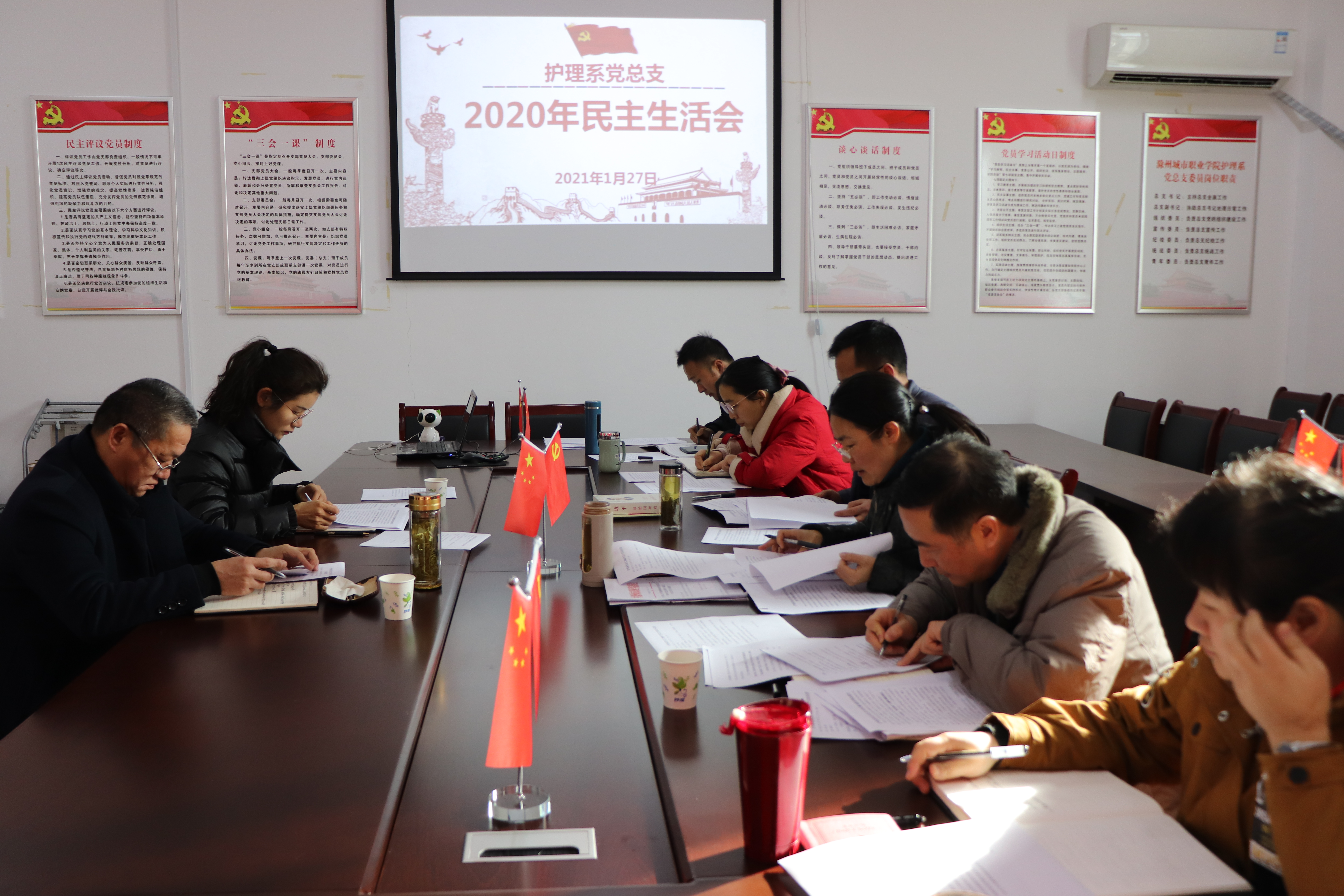 根据学院党委统一部署,1月27日上午,护理系党总支召开2020年度民主生活会。党委委员、副院长施向阳率督导组到会指导,并点评。系党总支书记蔡季秋主持会议。