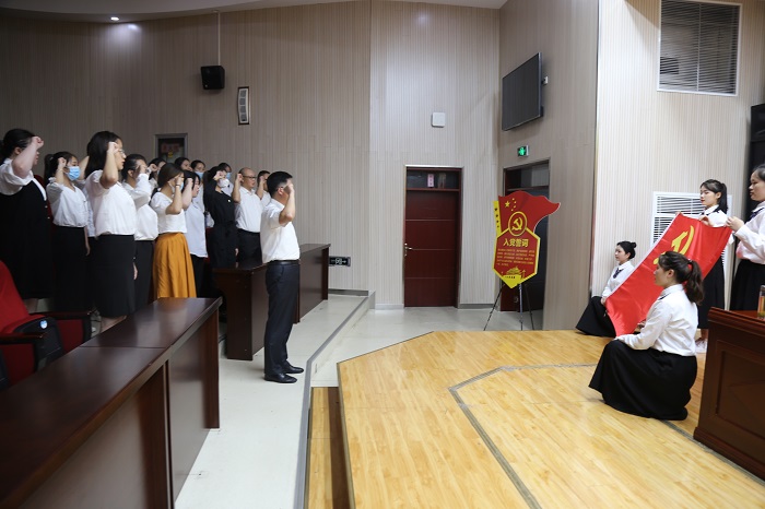 会上举行了新党员入党宣誓仪式,党委委员、办公室主任、宣传统战部长陈通带领新党员进行入党宣誓,并向新党员表示衷心祝贺。
