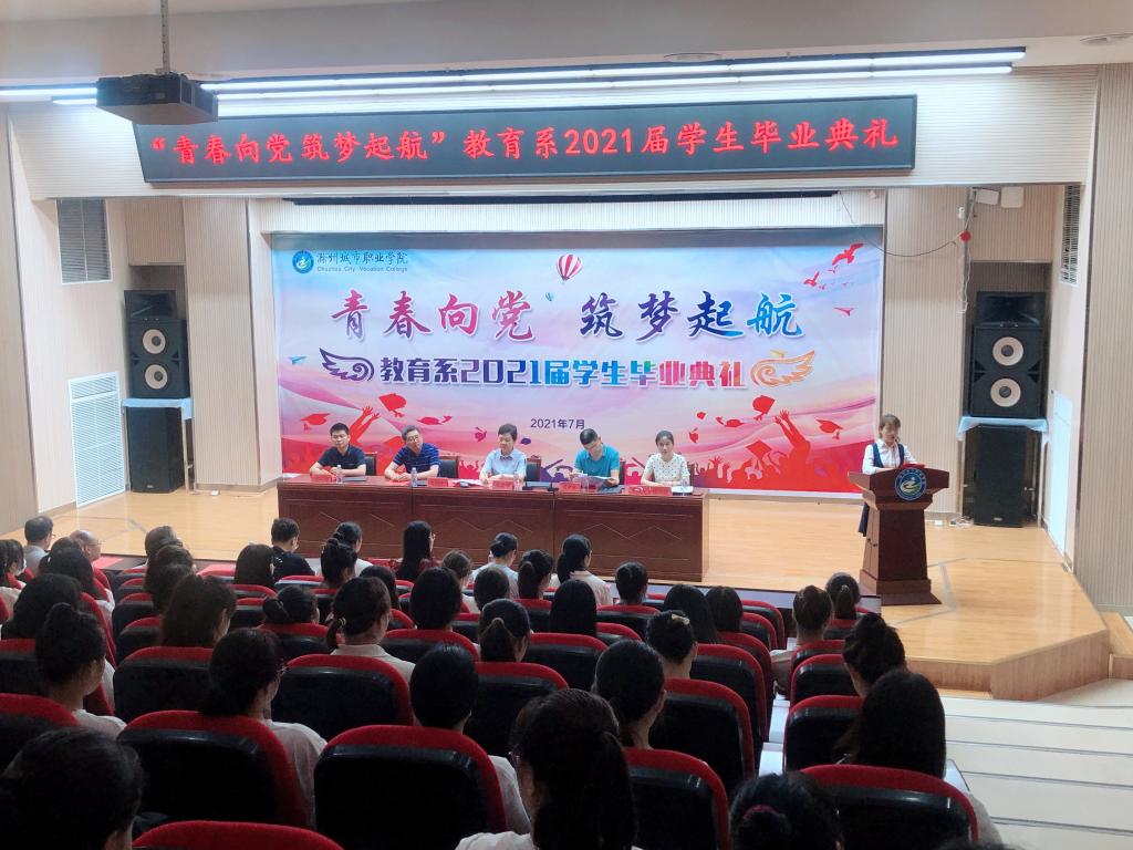 青春向党,筑梦起航。2021年7月7日上午,教育系2021届学生毕业典礼在图文中心报告厅隆重举行。学院党委书记张志华出席典礼,教育系党政班子成员、教师代表、辅导员代表、187名毕业生代表现场一起见证这难忘时刻。毕业典礼由教育系党总支副书记徐立娟主持。