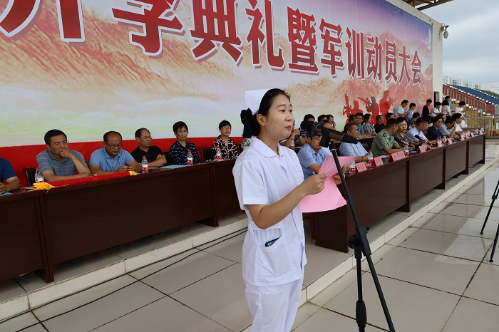 驻滁某部政治部副主任薛锋代表军训部队官兵讲话。薛锋表示,一直以来,学院高度重视军民共建工作,作为滁州市双拥工作模范单位,学院为部队的发展做出了积极贡献,双方建立了深厚的友谊,相信在双方共同努力下,一定可以推动军民关系更加融合。对于接下来的军训,全体教官一定会以良好的军人形象、过硬军事素质,发扬不怕苦、不怕累的精神,严格落实军训的各项要求,为完成军训任务尽心尽力。同时要求广大新生服从统一指挥,坚持刻苦训练,恪守纪律规矩,着力养成良好习惯,为今后的学习生活夯实根基。