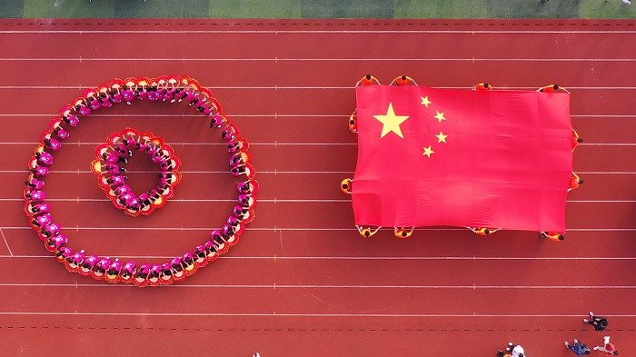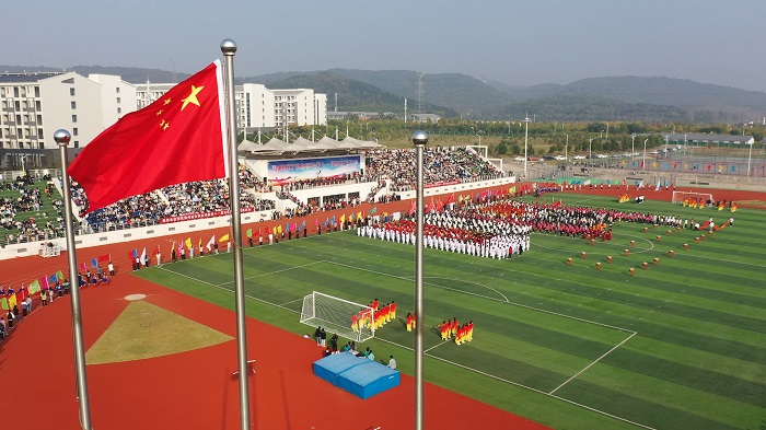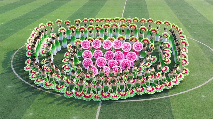 开幕式上,近千名学生参加了文艺表演,场面恢宏壮观、震撼人心。整齐划一的团体操表演,激昂欢快的舞蹈表演和庆祝中国共产党成立100周年及新中国成立七十二周年的大型团体操《我和我的祖国》等文艺表演,充分展现出当代大学生的青春与活力以及他们对祖国的热爱。