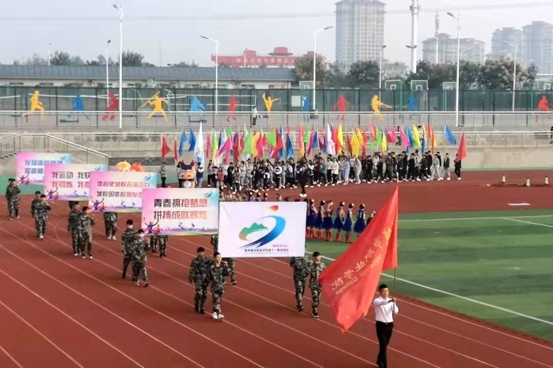 看台上,欢呼雷动、热血沸腾;赛场上,朝气蓬勃、蓄势待发。上午8时入场式开始,伴随着激昂的运动员进行曲,校旗会徽护卫队、运动会展板方阵、彩旗方阵迈着整齐有力的步伐走过主席台。随后,由各系代表队组成的表演方阵依次入场,精彩纷呈的入场式充满创意和青春正能量,既展现每个系的专业特色,也展示了同学们朝气蓬勃、阳光自信、健康向上的精神风貌。