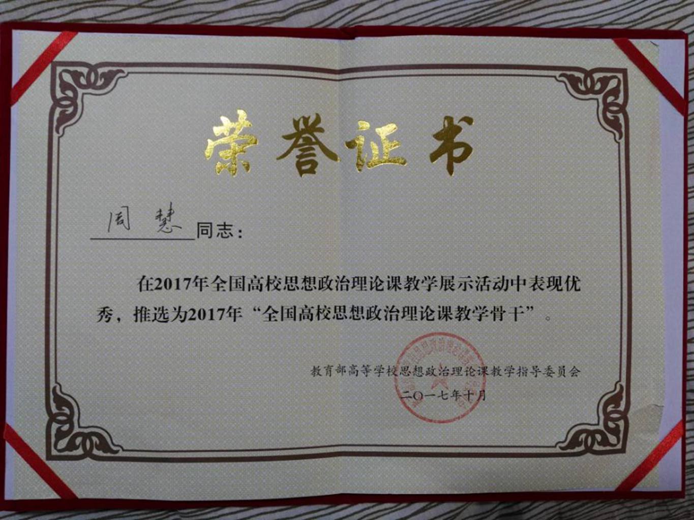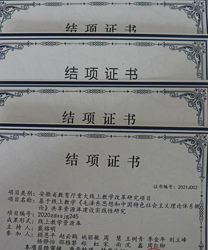 2017年周慧参加全国高校思政理论课教学展示活动获优秀奖; 2018年邵雅黎团队、2019年刘燕燕团队参加学院青年教师教学能力比赛,分别获得二等奖和三等奖;杨思羽老师参加安徽省高校思想政治理论课教师党史说课暨教学展示比赛获皖北赛区优秀奖。