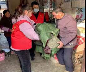 ②1月12日,跟随黄泥社区新时代文明实践站志愿者对辖区70周岁以上独居老人送上了棉被,温暖了寒冬;