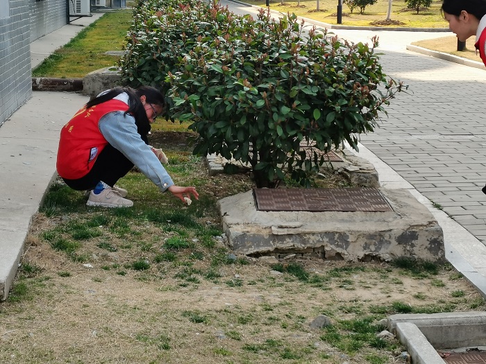 立足校园实际,美化校园环境。近日,护理学院“南丁格尔”志愿者服务队身穿红马甲,在校园内开展志愿服务活动,志愿者们积极对地面的落叶、花园内的杂草及路边的垃圾进行了清扫。看着清扫完后干净整洁的道路,志愿者自豪地说道:“参加完这个活动,我们进一步明白了志愿者精神的精髓,今后我们要积极参加保护环境志愿服务活动,发扬雷锋精神,让雷锋精神深入心中,用实际行动美化校园、服务社会。”