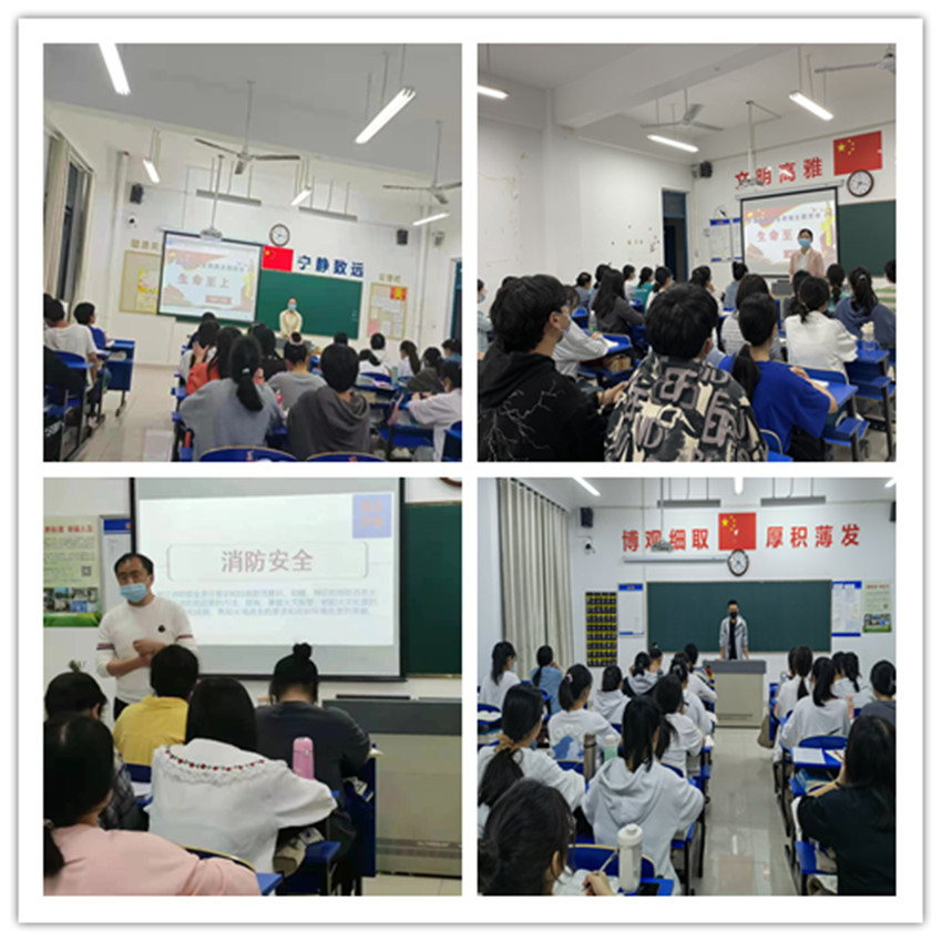 各班级辅导员(班主任)利用课件开展了人身财产安全、消防安全、食品卫生安全、网络安全教育、心理健康教育、校规校纪等7项安全教育活动。主题教育活动要求广大学生要认识、珍惜、热爱生命,培养积极的“生命观、生存观、生活观”,要充分认识自身安全的威胁因素,了解和掌握保障自身安全和生存的技能;要提高自身的法律素养,做到遵守国家法律法规和学校的规章制度,尊重社会公德,遵守公共秩序,爱护公共财产,在自己的权益受到侵犯时候能自觉运用法律武器维护自己的权益;要树立消防安全责任意识和自我防范意识,知晓、辨识和预防各类火灾、环境危险因素的方法、措施,掌握火灾报警、初起火灾处置的基本程序和技能,熟知火场逃生的要点和应对环境危害的策略;要养成科学合理的良好的饮食习惯,不暴饮暴食,不抽烟酗酒,不吃垃圾食品,在紧急情况下可以对卡咽的同学施以海姆立克法急救。