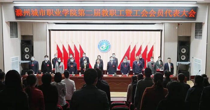 4月16日下午,滁州城市职业学院第二届教职工暨工会会员代表大会(简称“两代会”)闭幕式在图文中心四楼报告厅胜利举行。大会审议通过了滁州城市职业学院第二届教职工代表大会工作报告、工会会员代表大会工作报告、财务工作报告、提案工作报告等工作报告。大会选举产生了教代会执委会委员、工会委员会委员、经费审查委员会委员。党委书记张志华出席会议并致闭幕辞,校长汪上主持闭幕式。