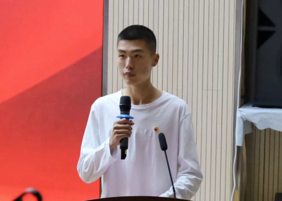 安徽省十佳百优大学生张旭震和最美志愿者代表顾启迪发言。两位同学结合自身将青春的奋斗和奉献进行深刻阐述,激励广大青年以先进为榜样,不断争先创优。