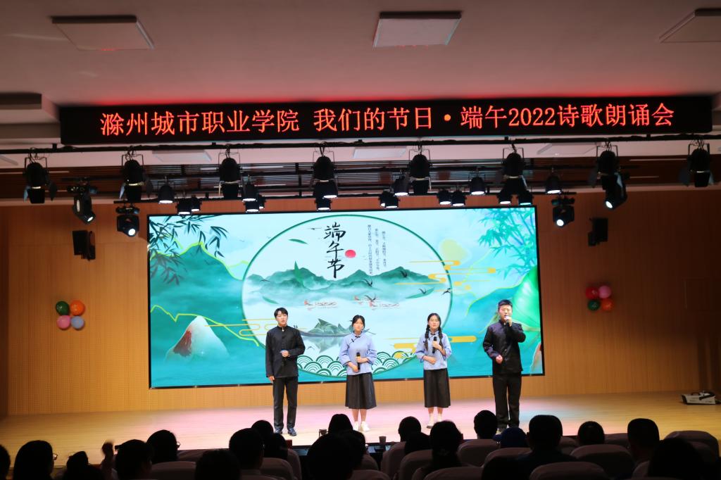 端午节是中国的传统节日,为弘扬民族精神,继承中华传统,并充分挖掘传统节日的文化内涵,培育和践行社会主义核心价值观。6月2日,由教育学院承办的“诵歌青春 传承经典”我们的节日·端午2022诗歌朗诵会在教育学院报告厅隆重举行。校党委副书记牛春雨,全椒县石沛镇党委副书记谢璐,教育学院党总支书记钱庆兵,校党委委员、教育学院院长高国柱,石沛镇党委委员、宣传委员童荃,宣传统战部副部长刘亮,教育学院党总支副书记徐立娟,教育学院副院长刘明辉,各二级学院团总支书记出席并观看活动。