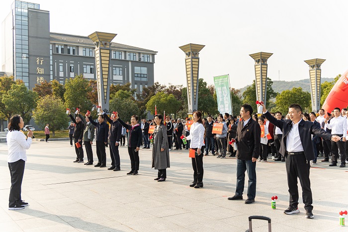 在举国上下学习贯彻党的二十大精神之际,11月3日下午,我校隆重举行2022年“欢庆二十大,奋进新征程”教职工统一着装环校健步走活动。健步走仪式在图文中心南广场举行,仪式由工会副主席陈之娟主持,校党委书记张志华,党委副书记、校长汪上等校领导班子全体成员亲临仪式现场并为活动鸣枪发令,全校近500名工会会员参加了活动。