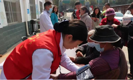同时,我校“南丁格尔”志愿者服务队赴滁州市西涧街道山林村,参加了由滁州市美好家园社会工作服务中心组织的“送医下乡”志愿服务活动。护理学院党总支副书记卢齐伟、团总支书记王艳、健康管理系主任王婷带领学生志愿者到达山林村,为村民们送教上门、送医上门,为村民健康义诊,现场解答村民的健康咨询,对患有基础疾病的老年患者进行用药指导,他们耐心细致的解答、无微不至的关怀,让现场的村民非常感动。