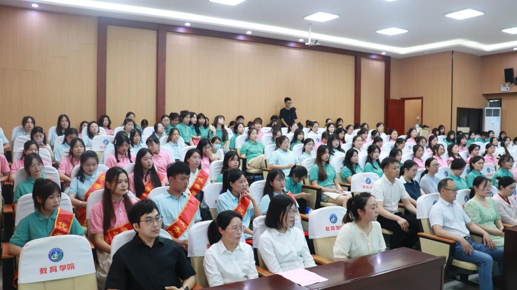 骊歌未央载梦启航。6月27日上午,教育学院2023届学生毕业典礼在教育学院报告厅礼隆重举行。校党委副书记、校长汪上出席典礼,校党委委员、教育学院党总支书记高国柱,院长徐立娟等学院党政班子成员、教师代表、毕业班辅导员(班主任)、135名毕业生代表现场一起见证这难忘时刻。毕业典礼由教育学院党总支副书记陈立超主持。