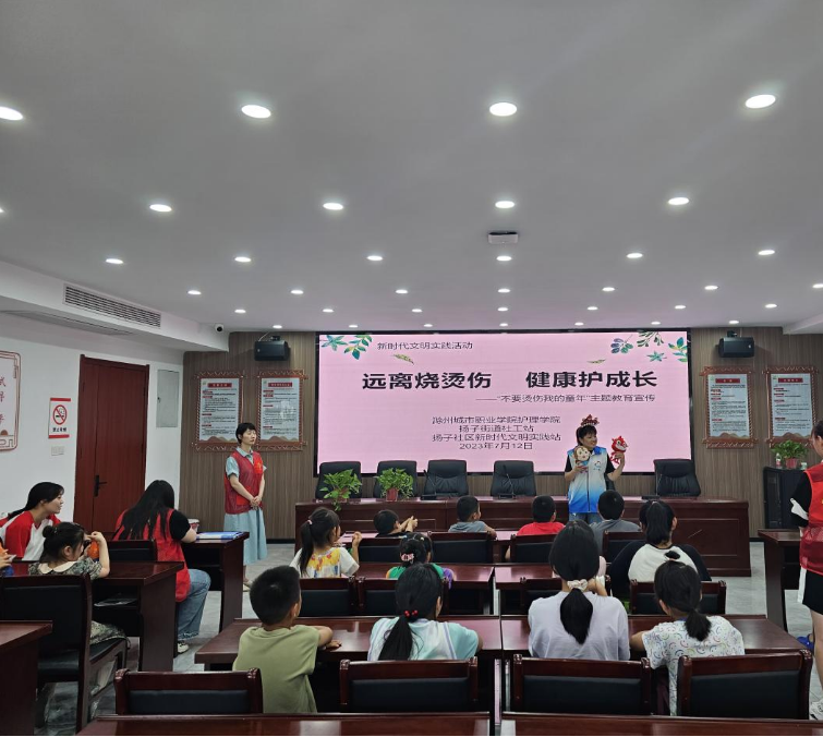 7月12日,护理学院联合扬子社区新时代文明实践站,开展了“不要烫伤我的童年”宣传教育主题活动。活动中,志愿者首先通过手里的玩偶向小朋友们介绍了“烫烫小怪兽”和“皮皮小超人”,并为大家介绍了“烫烫小怪兽”的不同类别。紧接着,志愿者还通过视频具体地为小朋友们讲解了“烫烫小怪兽”会隐藏在家里的什么地方,如:煤气灶、热水瓶、烧水壶等地,以及不同类型的“烫烫小怪兽”会给我们带来哪些伤害。同时,志愿者还结合生活中的真实案例,给孩子们讲解了涂牙膏、涂酱油、抹酒精等“土方法”所带来的危害及严重后果。活动中,志愿者们重点向大家介绍了烧烫伤急救的五字诀:冲、脱、泡、盖、送,强调及时有效的急救可以有效地减小“烫烫小怪兽”给孩子们带来的伤害。