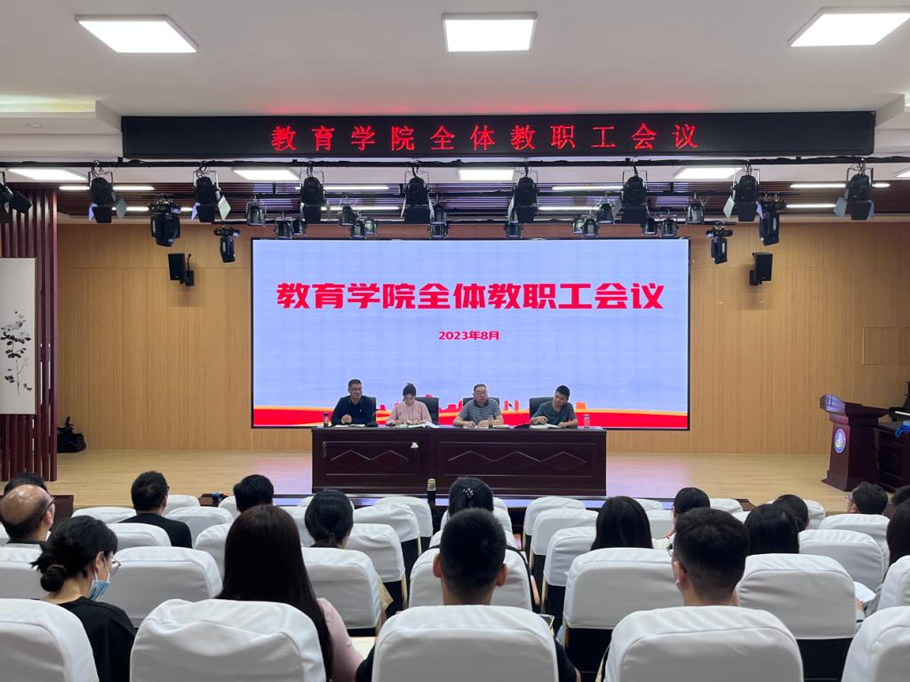 未觉夏暑尽,时序已新秋。为全面部署新学期各项工作,确保新学期工作的顺利开展,8月29日上午,教育学院在C2北1102报告厅召开了秋季学期全体教职工大会。校党委委员、教育学院党总支书记高国柱,院长徐立娟、党总支副书记陈立超、副院长刘明辉及全体教师参加会议。会议由陈立超主持。