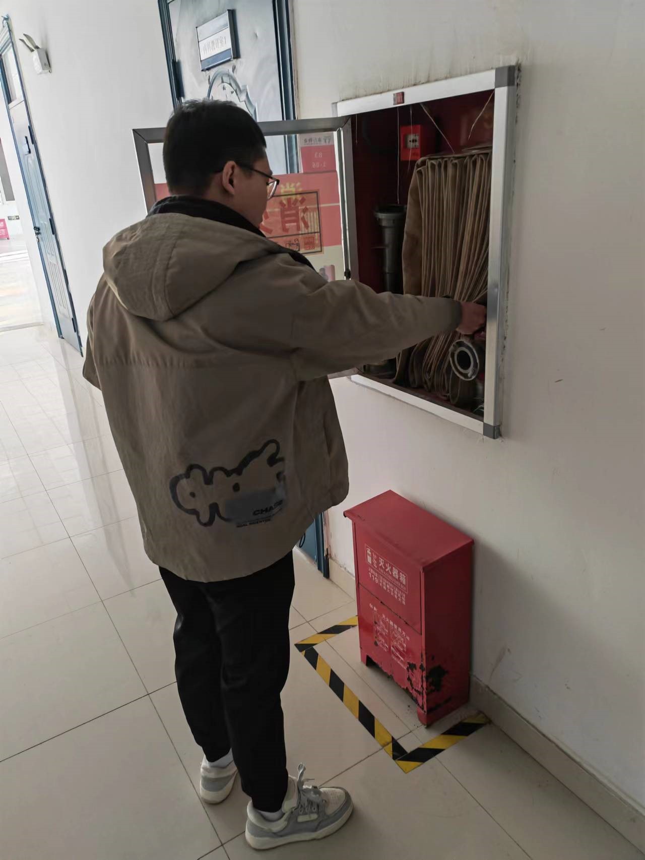 我院组织相关人员通过现场查看方式,及时清除教区内影响人员疏散的障碍物,保证本单位所属区域的安全出口、疏散通道畅通无阻。检查常规消防设施,例如:消火栓、应急逃生指示灯等,对发现的消防安全隐患及时上报保卫处处理。