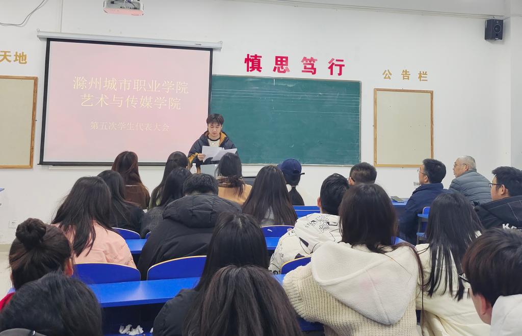 最后,艺术与传媒学院党总支书记杨孝富对本次会议进行总结讲话。他对新当选出的出席滁州城市职业学院第五次学生代表大会代表、艺术与传媒学院第五届学生会主席团表示衷心祝贺。他要求全体学生代表深刻领悟党的二十大精神,不负韶华、不负时代、更好地发挥学生代表服务全体学生作用,更好地团结和凝聚青年学生力量,为学院高质量发展作出应有贡献。