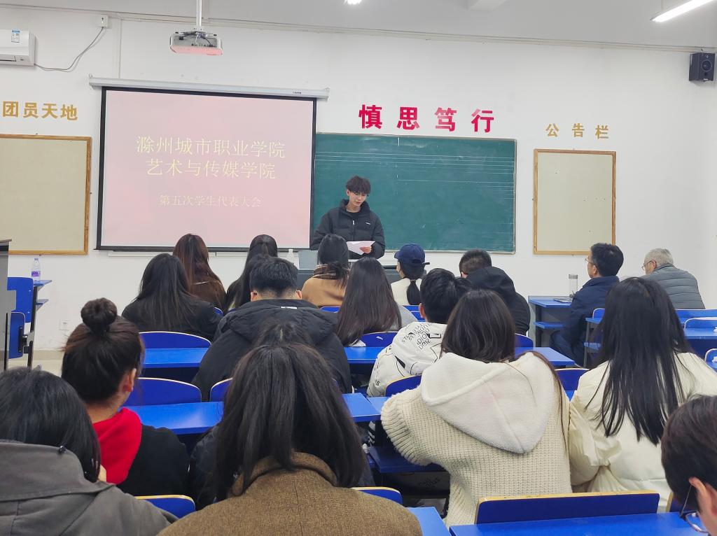 为了选优配强学生会干部,提升学生服务水平,11月29日,艺术与传媒学院第五次学生代表大会在C4-132教室顺利召开,第四届学生会主席团代表和59名各班级学生代表参加了本次会议。大会由艺术与传媒学院团总支书记周桐羽主持。艺术与传媒学院党总支书记杨孝富、副书记汪勇出席会议。