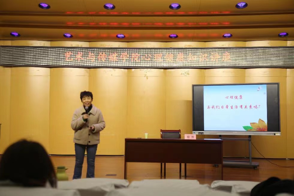 为了全面贯彻党的教育方针,促进学生思想道德素质和心理健康成长,12月13日下午,在音乐厅,艺术与传媒学院邀请到学校学生处心理健康教育中心主任程萍老师进行学生心理健康知识讲座,此次心理健康讲座以“心理健康——与我们日常生活的关系”为主题。艺术与传媒学院团总支书记周桐羽主持此次讲座,在校辅导员及100余名学生参与该讲座。