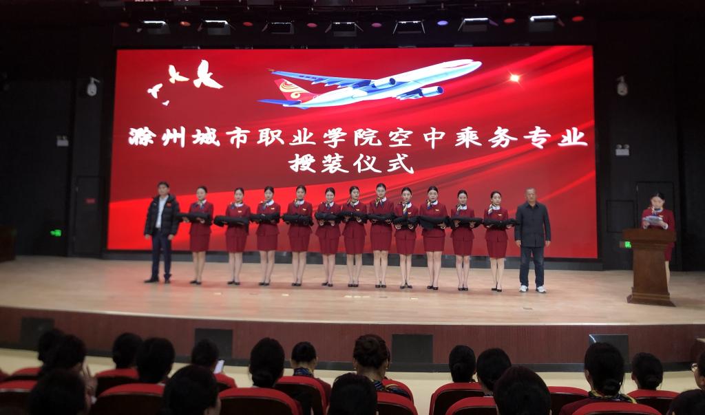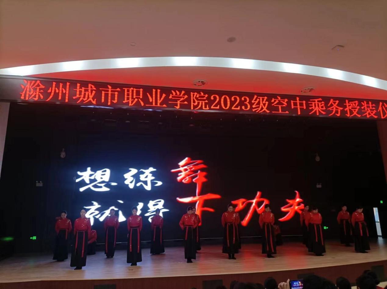 同学们整装肃立,高举右手宣誓:“我是滁州城市职业学院空中乘务专业的学生,是未来从事航空服务事业的工作人员,遵守滁州城市职业学院校规,遵守空中乘务专业行为规范,履行学生的职责和义务,心存敬畏,满怀感激,坚定航空服务工作信念,牢记我是民航人,践行民航精神,认真学习,严谨锤炼,时刻准备着,为民航事业贡献自己的智慧与力量。无愧于学校!无愧于民航事业!无愧青春!”