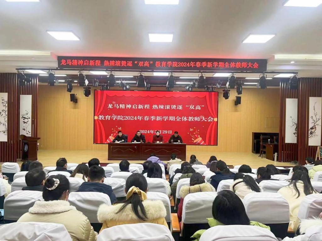 为谋新篇开新局,确保新学期开学各项工作平稳有序进行,2月29日上午,教育学院在C2北1102报告厅召开2024年春季新学期全体教师大会。校党委委员、学院党总支书记高国柱,党总支副书记、院长徐立娟,副院长刘明辉、党总支副书记陈立超及全体教师参加会议,会议由陈立超主持。