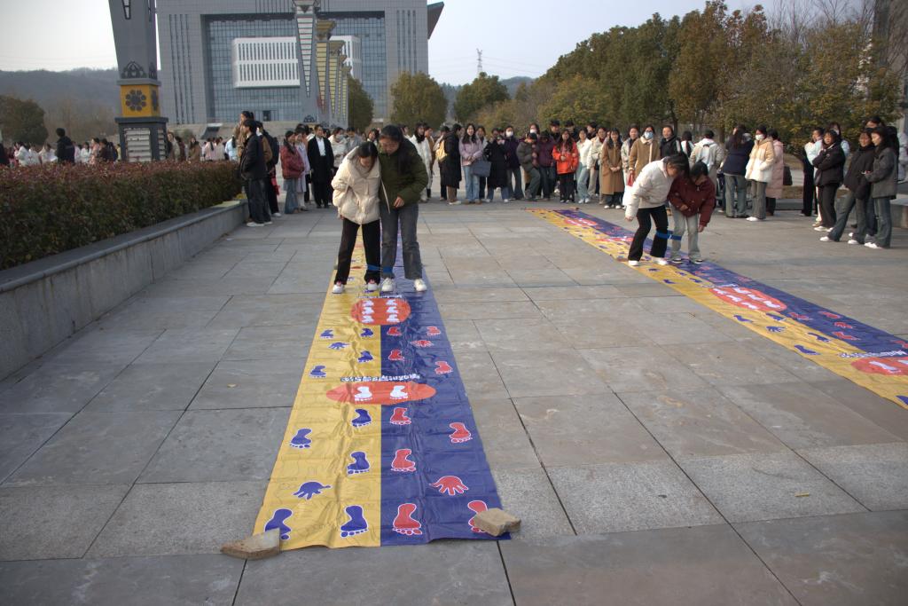 在“两人三足”比赛中,参赛者们两两一组,绑住相邻的两条腿,协同前行。她们步伐一致,配合默契,展现出惊人的团队协作能力。在“不倒森林”项目中,参赛选手们手持长杆,时而小心翼翼地调整角度,时而迅速反应,避免长杆倾倒。现场观赛的同学们也为选手们加油助威,现场气氛热烈而紧张。这不仅考验选手们的平衡感和协调能力,更是对团队默契度和配合能力的极大挑战。