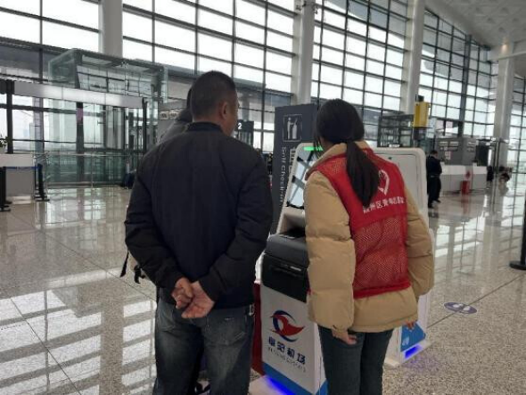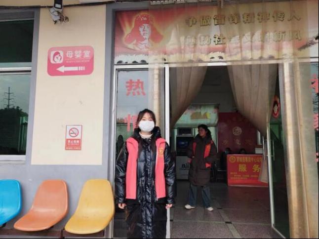 图为赵冰玉同学参与阜南县春运2024年客运站点志愿活动