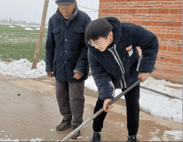 “读万卷书,行万里路。”同学们把劳动教育融入实践,为老人扫地、缝衣,看见老人在田里犁地,也参与其中。安徽今年的冬天大雪纷飞,阜阳市太和县孙增成同学主动为老人扫除门前雪,用行动温暖这个冬天。他说“尊老敬老是中华民族的传统美德,这次能为村里老人做些力所能及的事,特别开心。”