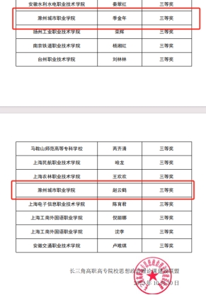 1.教师比赛撷取硕果。近年来,马院积极组织思政课教师特别是年轻教师参加各级各类教学比赛,举办思想政治理论课教师公开课、示范课、新教师观摩课,组织教师参加教师教学能力大赛、微课大赛、“课程思政”比赛,组织思政教师指导学生参加大学生讲思政课展示活动、微电影大赛,进一步提高思政课教师素质能力,达到“以赛促教”的目的,取得了累累硕果:马院教学团队参加安徽省高等职业院校教学能力大赛获一等奖;2人在安徽省高职高专思想政治理论课微课教学比赛中获一、二等奖,1人在长三角高职高专思想政治理论课微课教学比赛中获三等奖。教师参加滁州市委宣传部关于学习贯彻习近平总书记考察小岗村重要讲话精神征文活动比赛和学习贯彻习近平总书记考察安徽重要讲话精神优秀征文比赛,获三等奖2项。