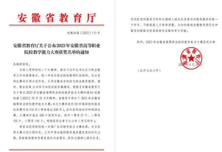 在安徽省首届大学生讲思政课公开课展示活动获片区赛三等奖1项;在教育部“领航计划”第六届全国大学生讲思政课公开课展示活动中,荣获高职组二等奖1项,优秀奖1项;在安徽省第二届大学生讲思政课片区赛中获二等奖1项,三等奖两项。苏欣同学代表我校参加由中共安徽省委教育工委主办的安徽省第二届大学生讲思政课展示活动高职组决赛荣获一等奖!