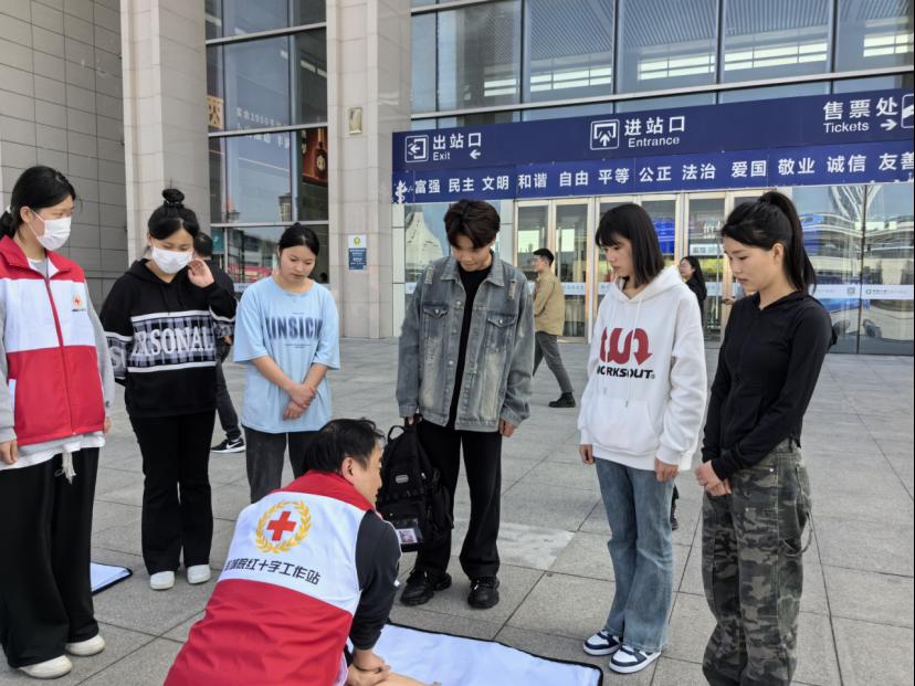 在滁州高铁站站前广场,志愿者身着整齐的志愿者服装,面带微笑,向过往的旅客发放应急救护宣传资料,并耐心地向他们讲解基本的急救知识和技能。培训教师现场演示了心肺复苏、止血包扎等实用技能。旅客纷纷驻足,踊跃参与,专心致志地聆听志愿者的讲解,认真学习急救知识。旅客张女士满怀感慨地说:“此次来滁旅行,我收获颇丰。在高铁站偶遇了滁州城市职业学院的师生志愿者,本次急救志愿服务活动,我不仅学到了实用的急救知识,更深刻地感受到了他们的专业与热情。