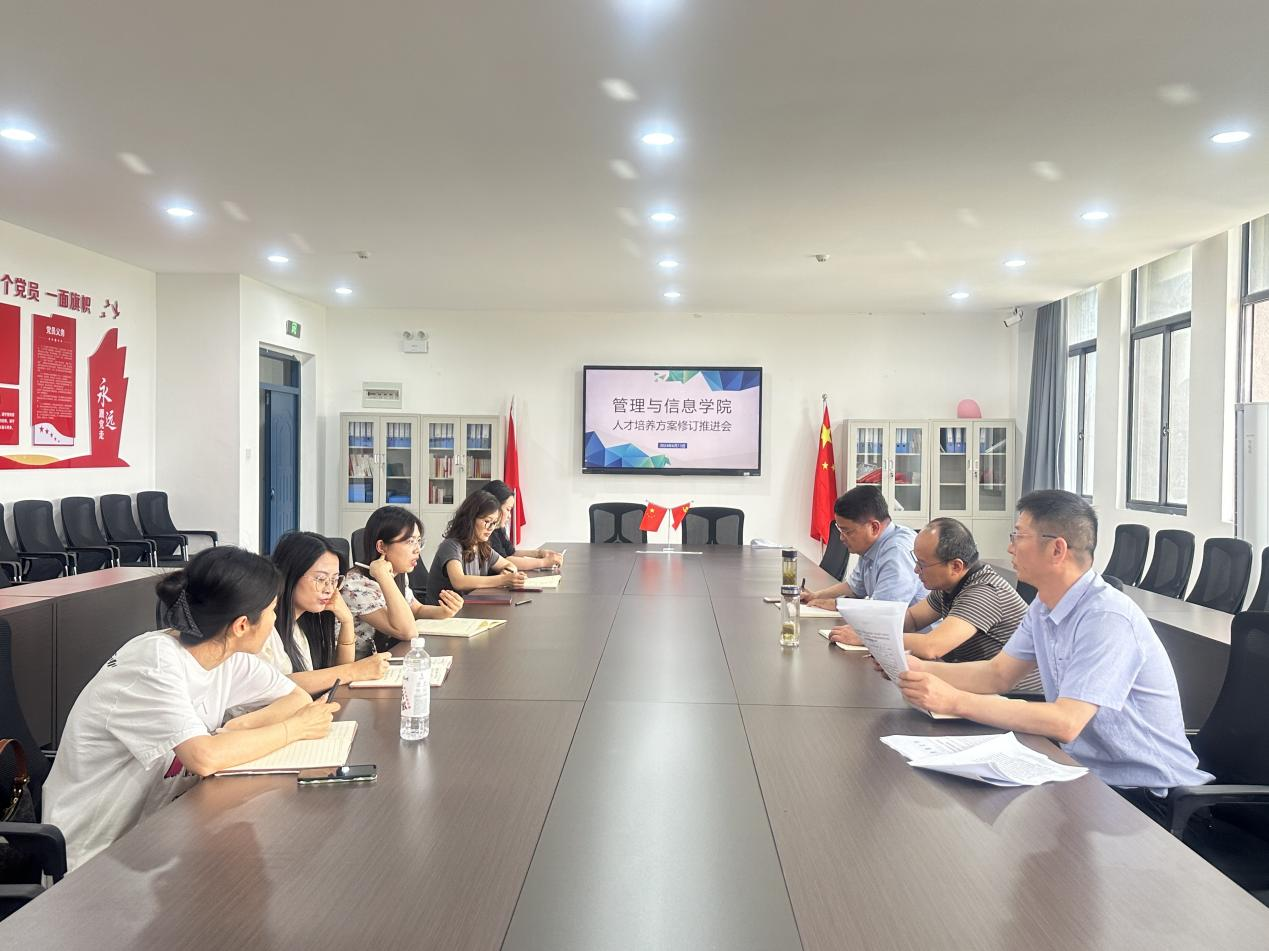 为进一步优化人才培养方案,提升教育质量,6月13日下午,管理与信息学院召开了人才培养方案修订推进会,会议由韩峰主持,管理与信息学院党总支书记陈兴旺、院长叶士舟及各专业负责人参加。
