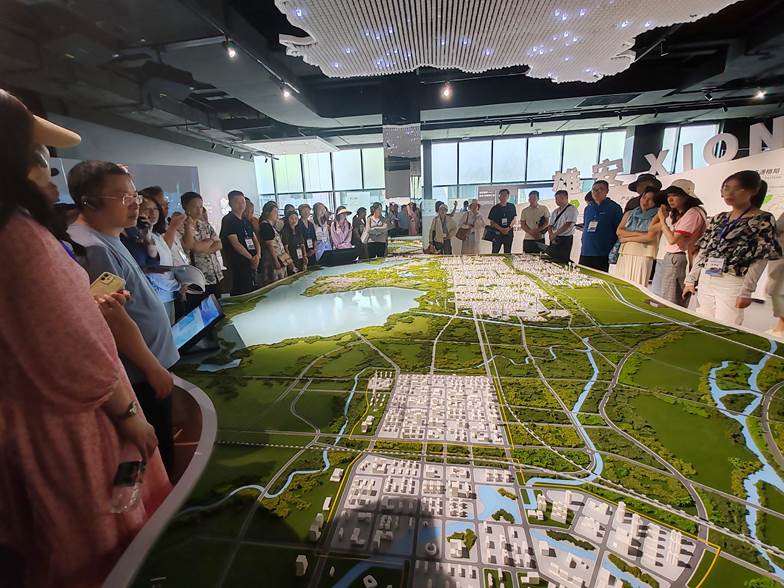 “未来的雄安,究竟是什么样的?”带着这个疑问,老师们走进了“雄安印象”展览馆与市民服务中心,寻觅雄安新区的成长足迹,遥望千年之城的未来图景。展馆从历史维度展示雄安千年战略要塞与“华北明珠”白洋淀人文资源积淀,从时代维度展示国家级新区的壮阔蓝图,探索雄安擘画的路径和里程碑意义。多元运用裸眼3D、多媒体触屏互动等数字科技,让雄安的过去、现在、未来真正“活”起来,让老师们于虚实互动中体验“人在画中游”的白洋淀风景秀场和城市人文记忆,领略数字赋能城市的魅力。更加直观地体会到设立雄安新区是以习近平同志为核心的党中央作出的一项重大历史性战略决策,是千年大计、国家大事。老师们在深刻领略雄安这座未来之城无限魅力的同时,积累了丰富的教学素材,拓宽了思政课教学思路。