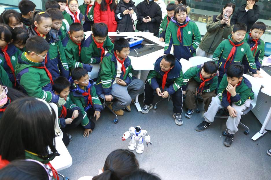 为了响应教育部等十八部门联合印发的《关于加强新时代中小学科学教育工作的意见》,推进地方小学人工智能教育普及化,全面落实做好科学教育加法,构建大科学教育新格局,助力地方小学申报全国科学素养教育基地。12月18日下午,滁州市实验小学120余名学生走进教育学院数智教育研创中心开展科技创新研学活动,共建“科学教育共同体”。通过虚拟现实、机器人编程、科学实验等丰富的沉浸式课堂体验,激发青少年的好奇心、想象力、探求欲,感受科技世界的魅力。