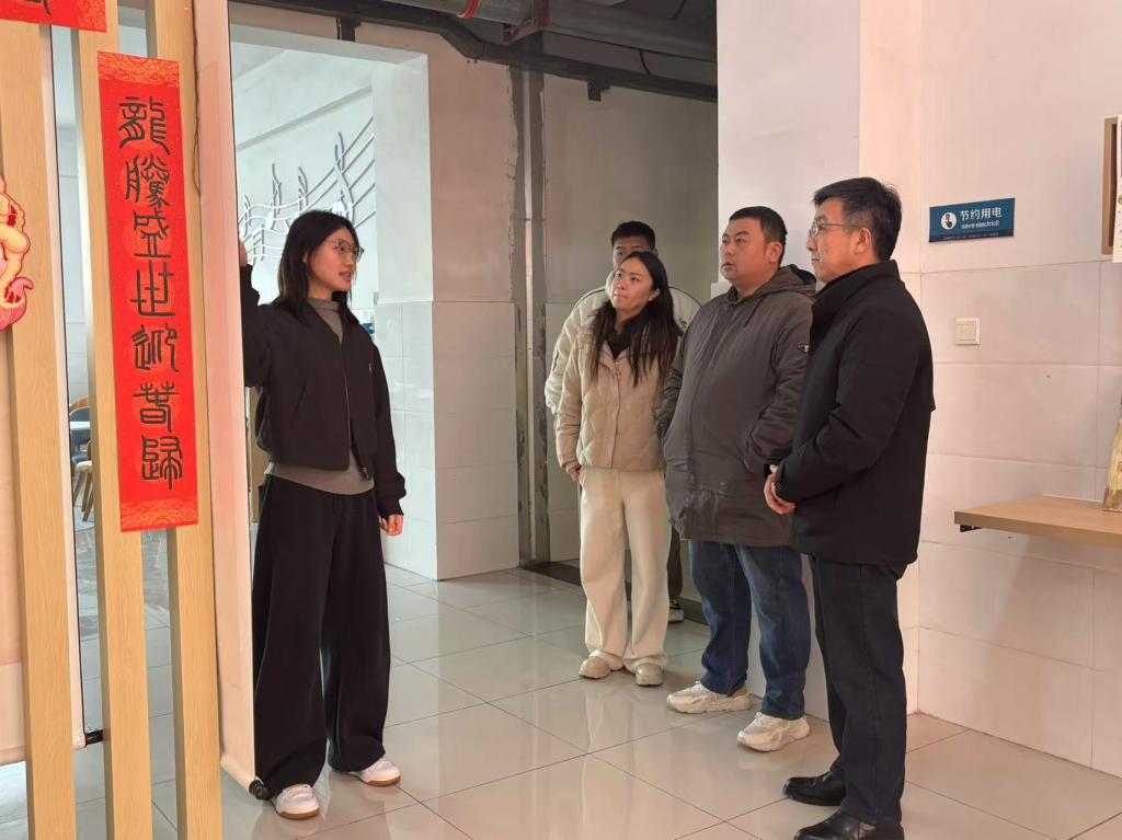 开幕式现场,艺术与传媒学院的党总支书记杨孝富、学生党支部书记贲蕾、学管秘书李巍、团总支书记周桐羽和同学们齐聚学院展厅,共同欣赏正在展出的春联、年画等讲述春节故事的红色向上的精彩画作。师生们围绕“金蛇贺岁”主题,将传统春节元素与红色文化巧妙融合。既有对新年的美好祈愿,又有对红色精神的传承与弘扬,在创作中回溯初心,传承红色基因。