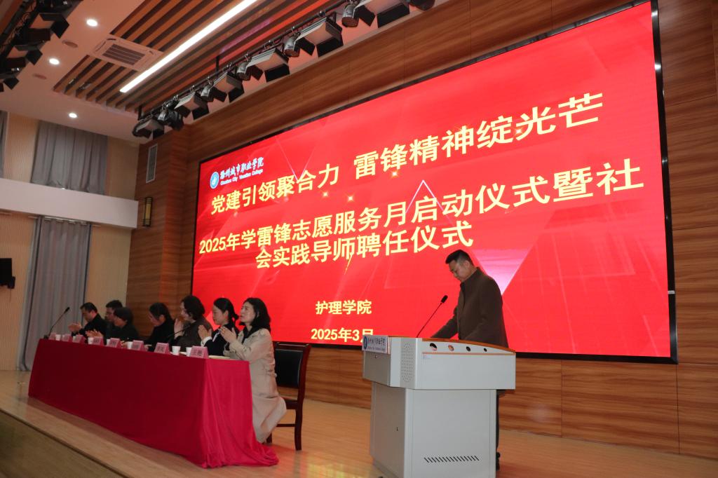 为深入贯彻落实党的二十大精神,弘扬新时代雷锋精神,推动志愿服务与基层党建深度融合,助力构建和谐社会,3月2日下午,护理学院在校第二学术报告厅举行了“2025年学雷锋志愿服务月启动仪式暨社会实践导师聘任仪式”。护理学院党总支书记蔡季秋、梅铺社区党委书记孙林余、校团委书记陈婷婷、梅铺社区副主任季凤、滁州好人、滁州市巾帼志愿者贲宗美、师生代表齐聚一堂,共同见证了这一重要时刻。