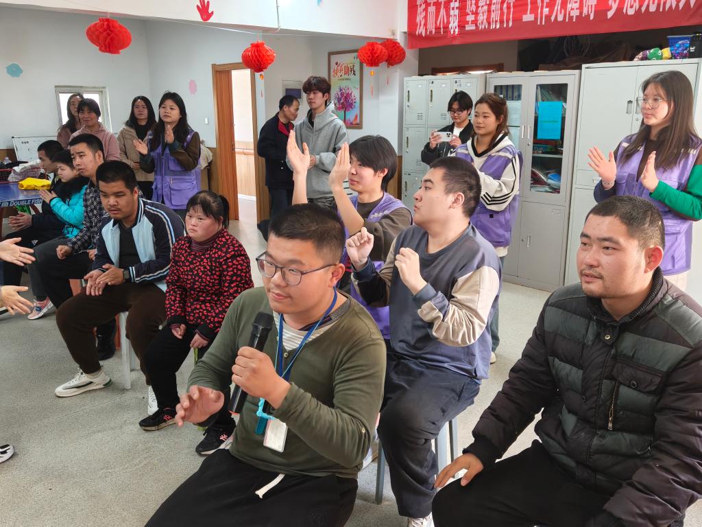 为了鼓励他们,增强社交能力。志愿者们不仅准备了手势舞、小歌曲,还组织了“抢凳子” 等一些简单且互动性强的小游戏 。