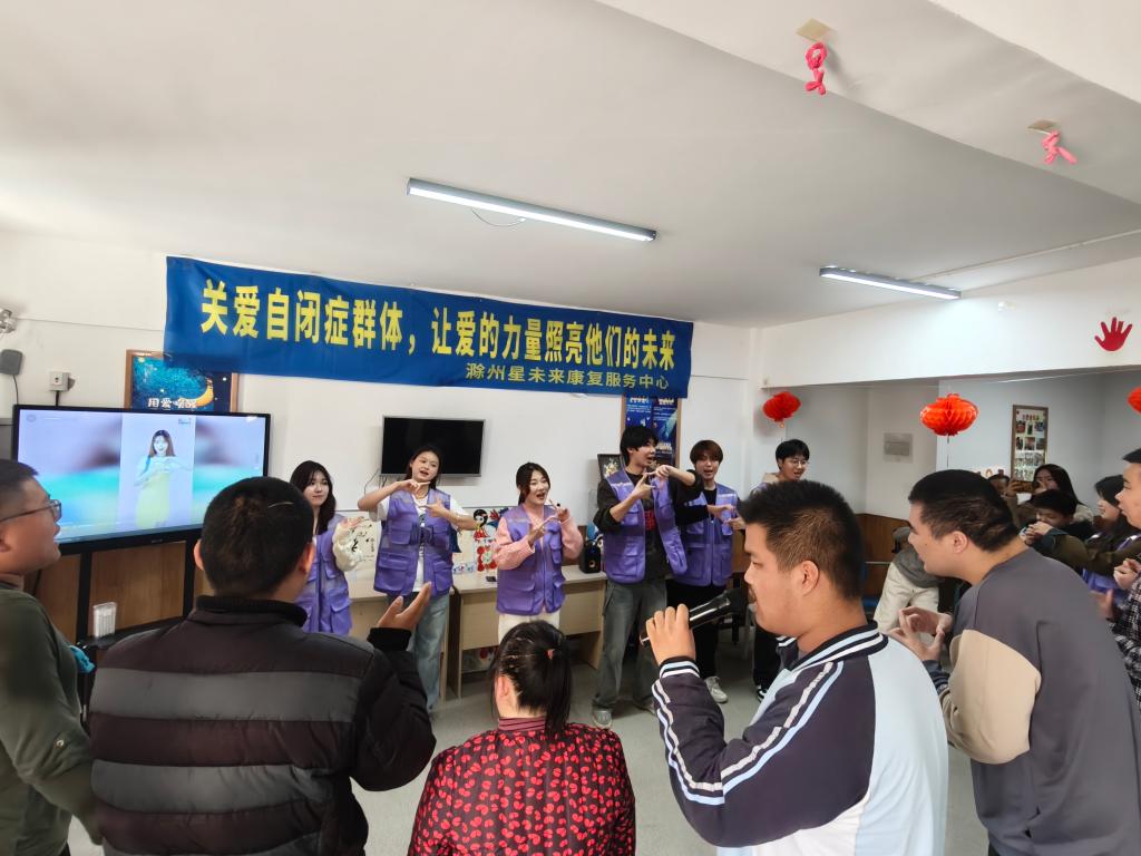 音乐启智、舞动心声。艺术与传媒学院团总支书记周桐羽、艺传协会指导老师贲蕾、甄真带领艺术与传媒学院艺+1志愿者们走进社区,举办了一场别开生面的歌唱舞蹈教学活动,为自闭症患者带来了一场充满爱与欢乐的音乐之旅。