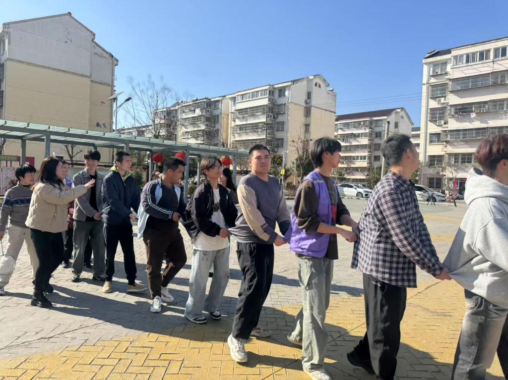 活动伊始,音乐生们以一首欢快的《你笑起来真好看》拉开帷幕,在悠扬的旋律中,他们一边唱歌,一边跟着节奏做出简单欢快的舞蹈动作。这种轻松愉悦的氛围,让大家自然地融入到活动中来。